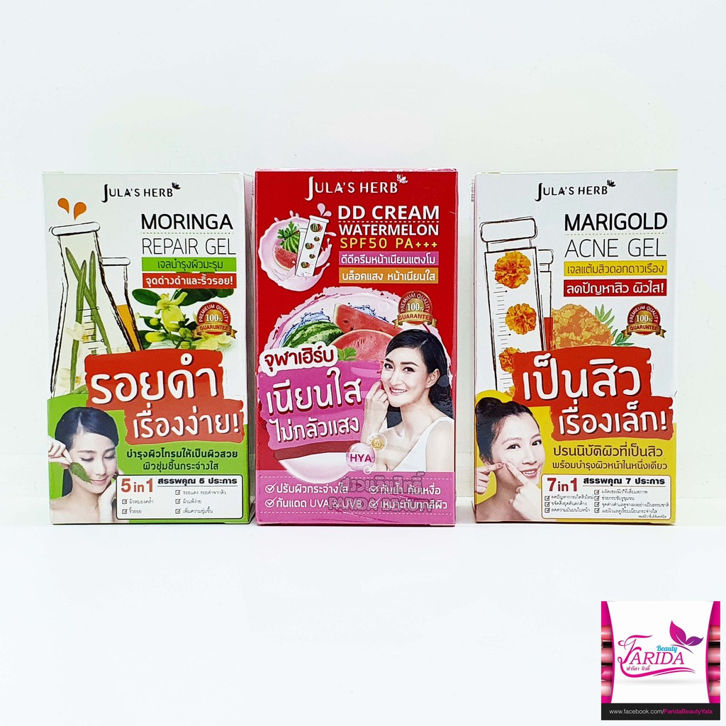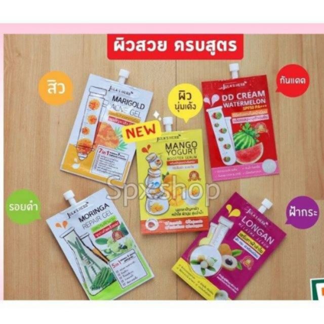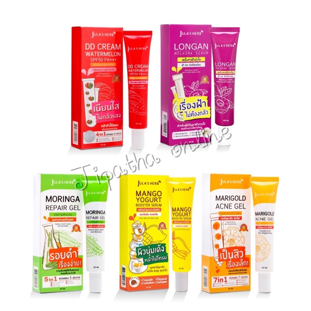 Jula's herb จุฬาเฮิร์บ แบบหลอด (dd ครีมแตงโม,เจลมะรุม,เจลดาวเรือง,เซรั่มลำไย,เซรั่มมะม่วง) quantity