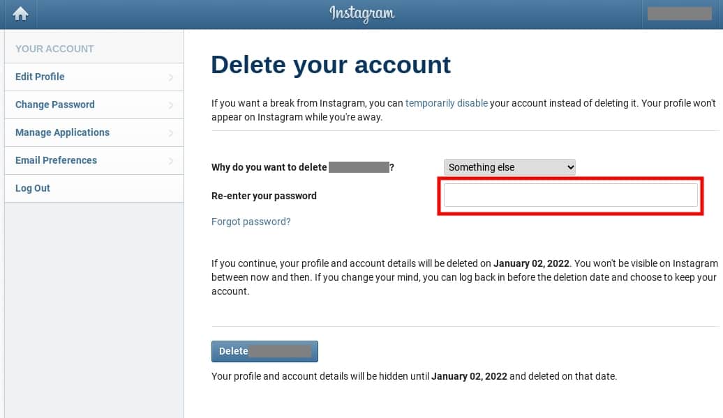 Whwre Is The Delete Your Account Page For Instagram / © instagram how to delete instagram account, how to deactivate instagram account (instagram) 3.. Feb 15, 2022 · go to the delete your account page. © instagram how to delete instagram account, how to deactivate instagram account (instagram) 3. To request the permanent deletion of your account: Click the delete username button. Select an option from the dropdown menu next to why are you deleting your account?